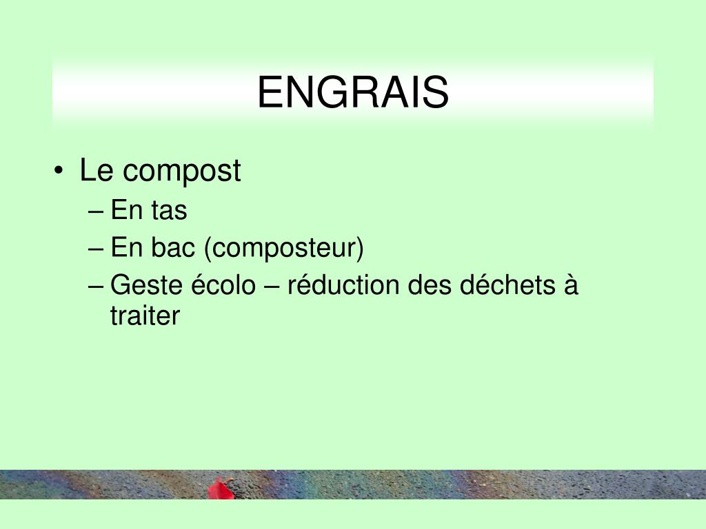 ENGRAIS • La pollution • Le compost • Les engrais verts