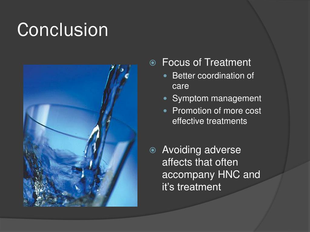 Conclusion • Focus of Treatment • Better coordination of care • Symptom management • Promotion of more cost effective treatments • Avoiding adverse affects that often accompany HNC and it’s treatment