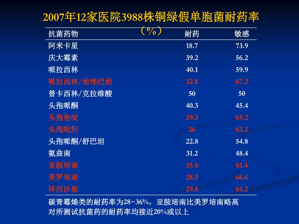 细菌耐药性监测与临床. 省立医院检验科 李华. 为什么要检测耐药菌. 感染病原的变迁造成现代感染模式 耐药菌株的流行 临床的需要 ( 指导感染性疾病的个体化治疗, 细菌的耐药性监测 指导经验治疗 ). 2007 年肠杆菌属细菌耐药率( % ). 2007 年 12 家医院 3988 株铜绿假单胞菌耐药率( % ). 2007 年 12 家医院 3157 株不动杆菌属细菌的耐药率( % ). 细菌产生耐药性的原因. 分裂繁殖方式: 以其二分裂繁殖方式使自身可在很短的时间里分裂繁殖,使自身增加数百亿万倍,有利于耐药性的播散。