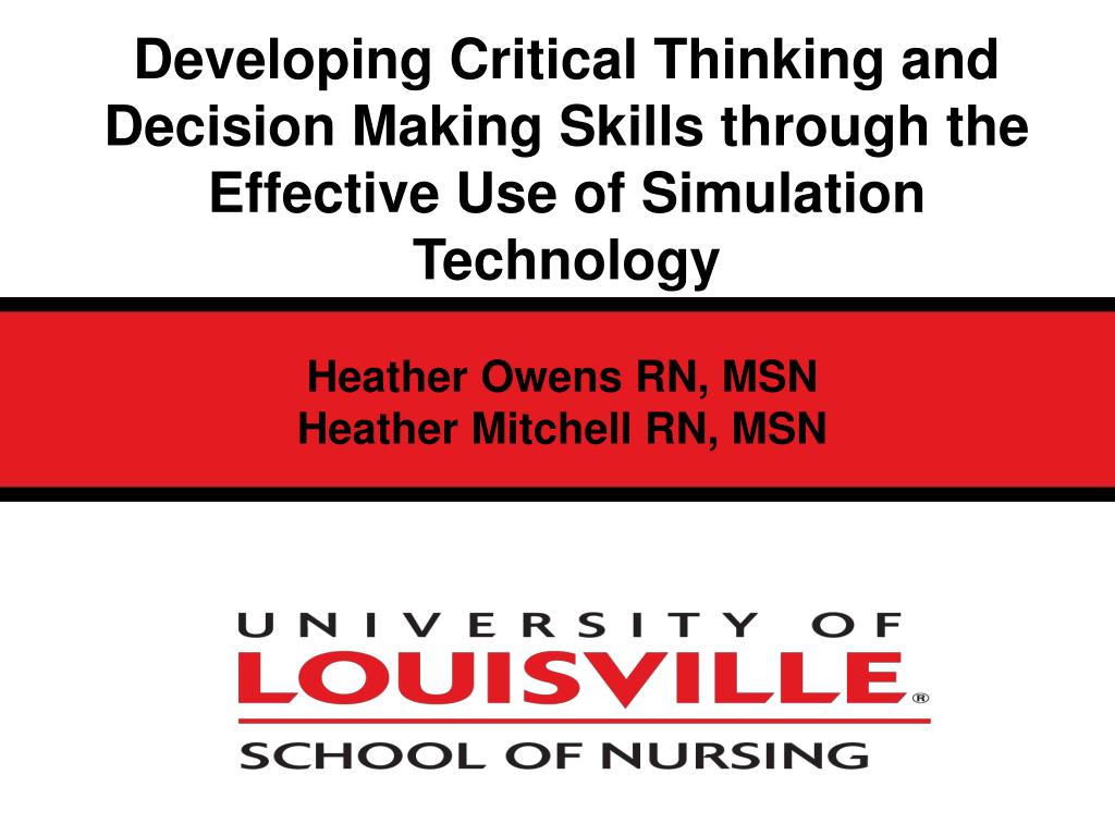 Developing Critical Thinking and Decision Making Skills through the Effective Use of Simulation Technology Heather Owens RN, MSN Heather Mitchell RN, MSN