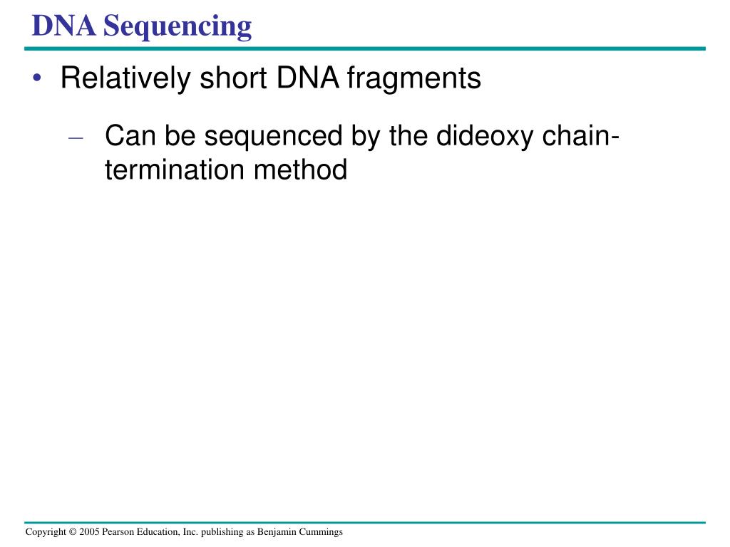DNA Sequencing • Relatively short DNA fragments • Can be sequenced by the dideoxy chain-termination method