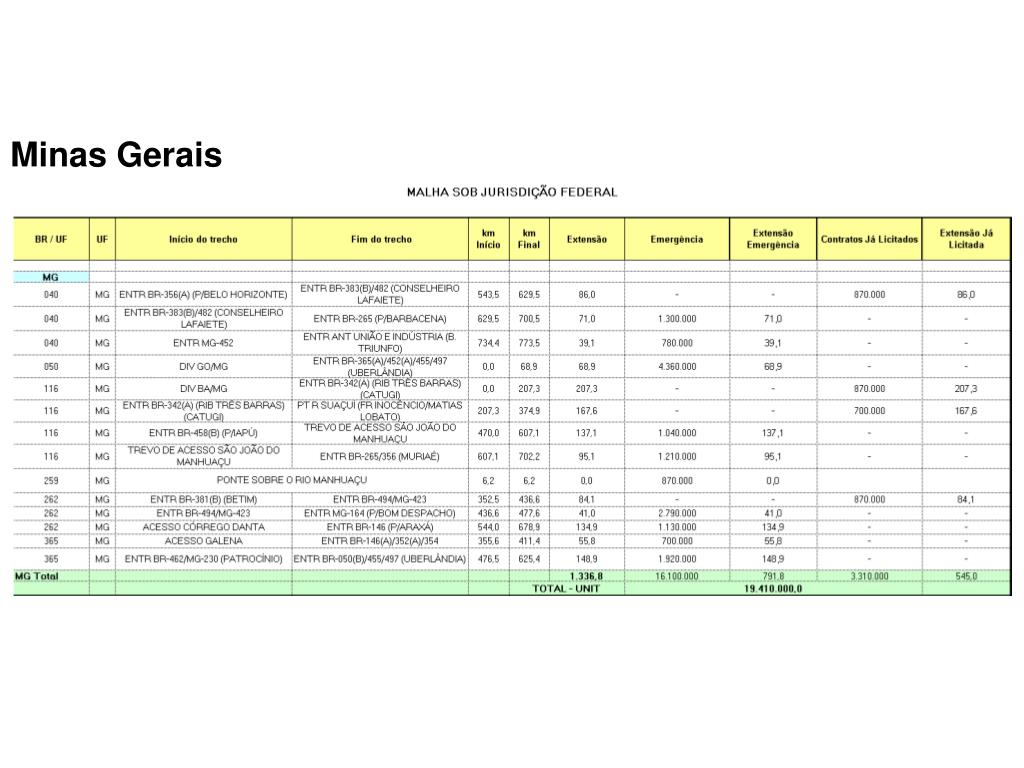 Providências concomitantes • Conclusão e abertura de novas licitações de projetos de engenharia para definição de solução mais adequada para cada trecho de rodovia • Conclusão e abertura de novas licitações para a execução dos serviços