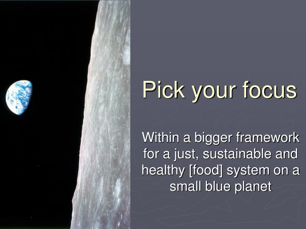 Pick your focus Within a bigger framework for a just, sustainable and healthy [food] system on a small blue planet