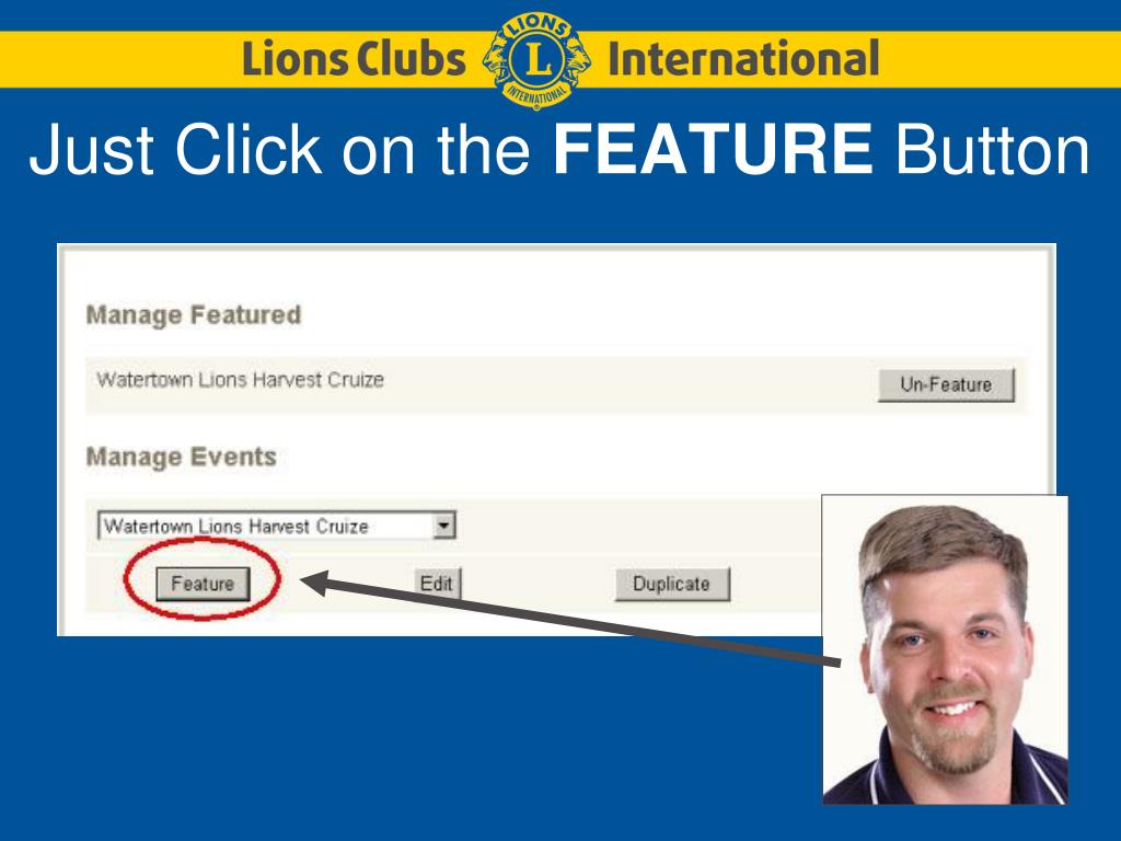 Use FEATURED EVENT Featured Events will appear on your HOME page Use only one or two events Select that event from the pull-down menu