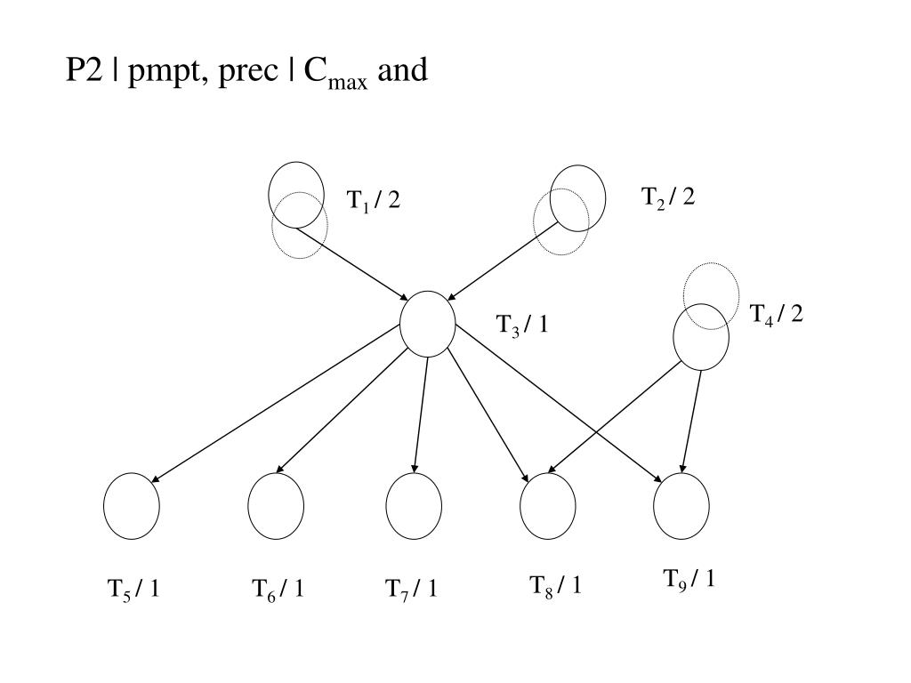 If preemption is allowed : P3 | pmpt | Cmax n C*max = max{ max{ pj}, 1/måPj } j=1 P1 P2 P3 T1 T2 T3 T4 T5 P1 T1 T2 P2 T3 T4 P3 T4 T5 T5 (If ther is a big task)