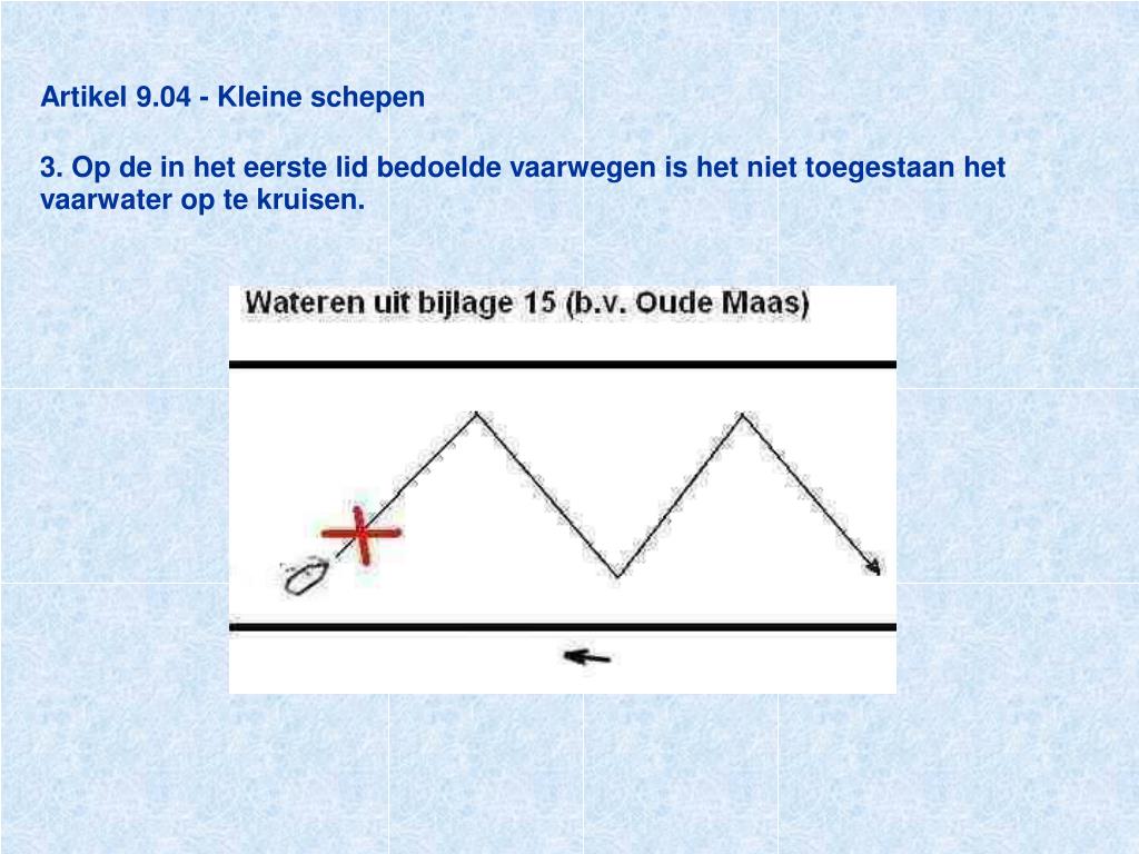 Artikel 9.04 - Kleine schepen3. Op de in het eerste lid bedoelde vaarwegen is het niet toegestaan het vaarwater op te kruisen.