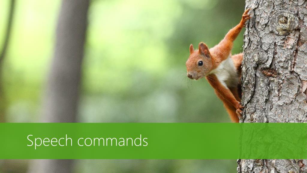 The Voice Command Definition file This is the phraselist for the command The user can say any of the words in the phraselist to match this command The application can determine the phrase used The phraselist can be changed by the application dynamically <CommandPrefix> Fortune Teller </CommandPrefix> <Example> Will I find money </Example> <CommandName="showMoney"> <Example> Will I find money </Example> <ListenFor> [Will I find] {futureMoney} </ListenFor> <Feedback> Showing {futureMoney} </Feedback> <NavigateTarget="/money.xaml"/> </Command> <PhraseListLabel="futureMoney"> <Item> money </Item> <Item> riches </Item> <Item> gold </Item> </PhraseList>