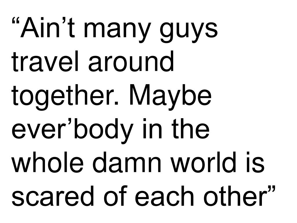 “Ain’t many guys travel around together. Maybe ever’body in the whole damn world is scared of each other”