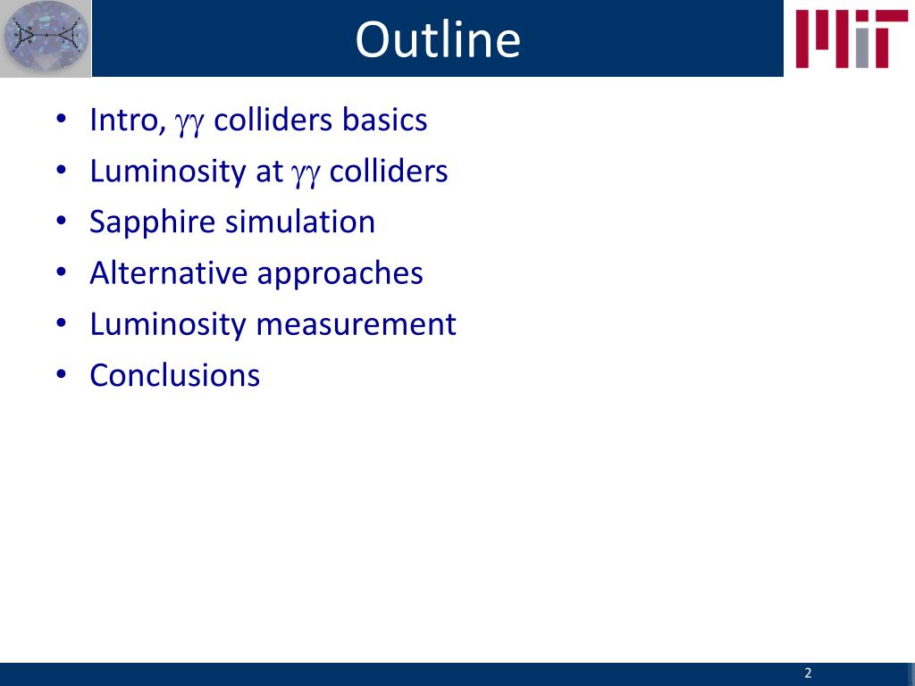 Outline • Intro, ggcolliders basics • Luminosity at gg colliders • Sapphire simulation • Alternative approaches • Luminosity measurement • Conclusions