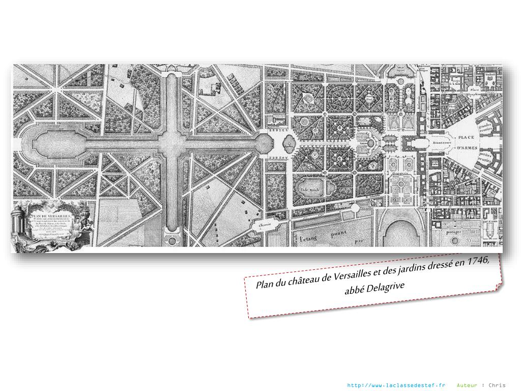 Plan du château de Versailles et des jardins dressé en 1746, abbé Delagrive http://www.laclassedestef.fr Auteur : Chris