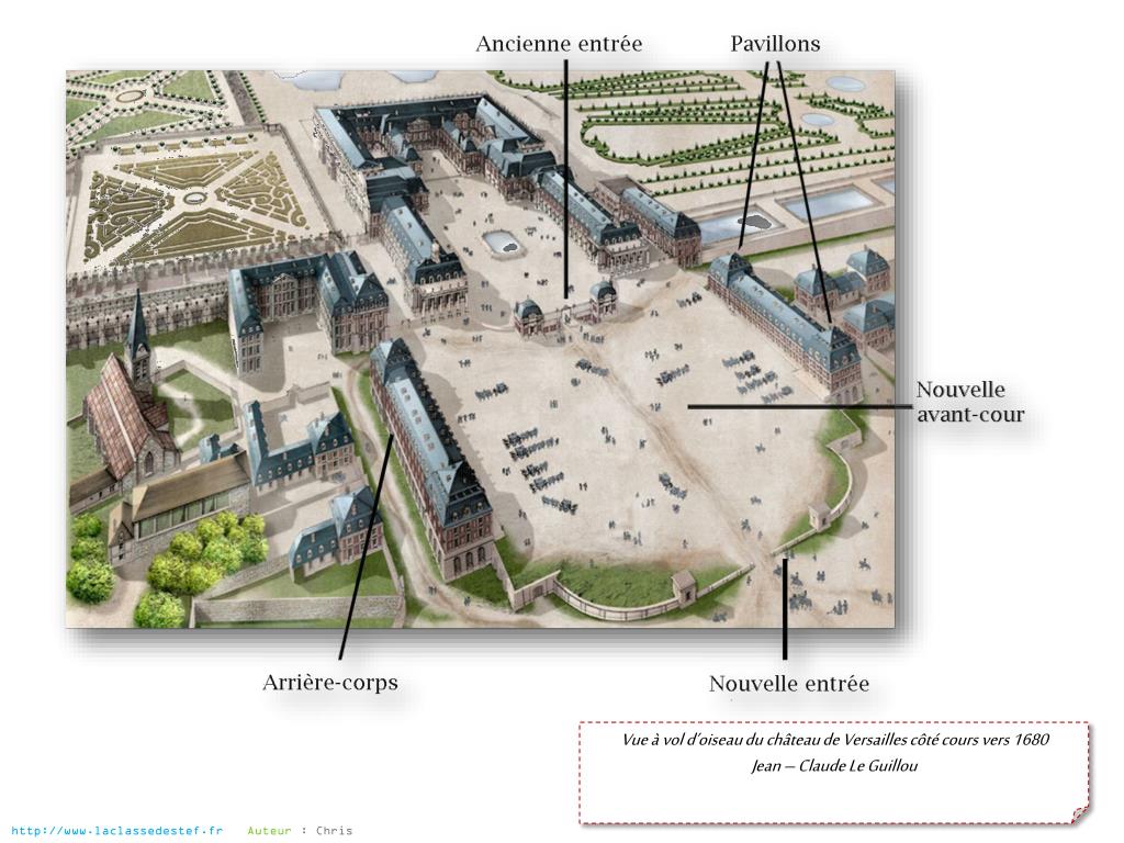 Vue à vol d’oiseau du château de Versailles côté cours vers 1680 Jean – Claude Le Guillou http://www.laclassedestef.fr Auteur : Chris