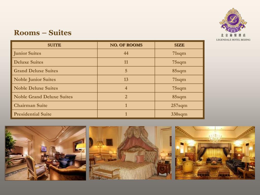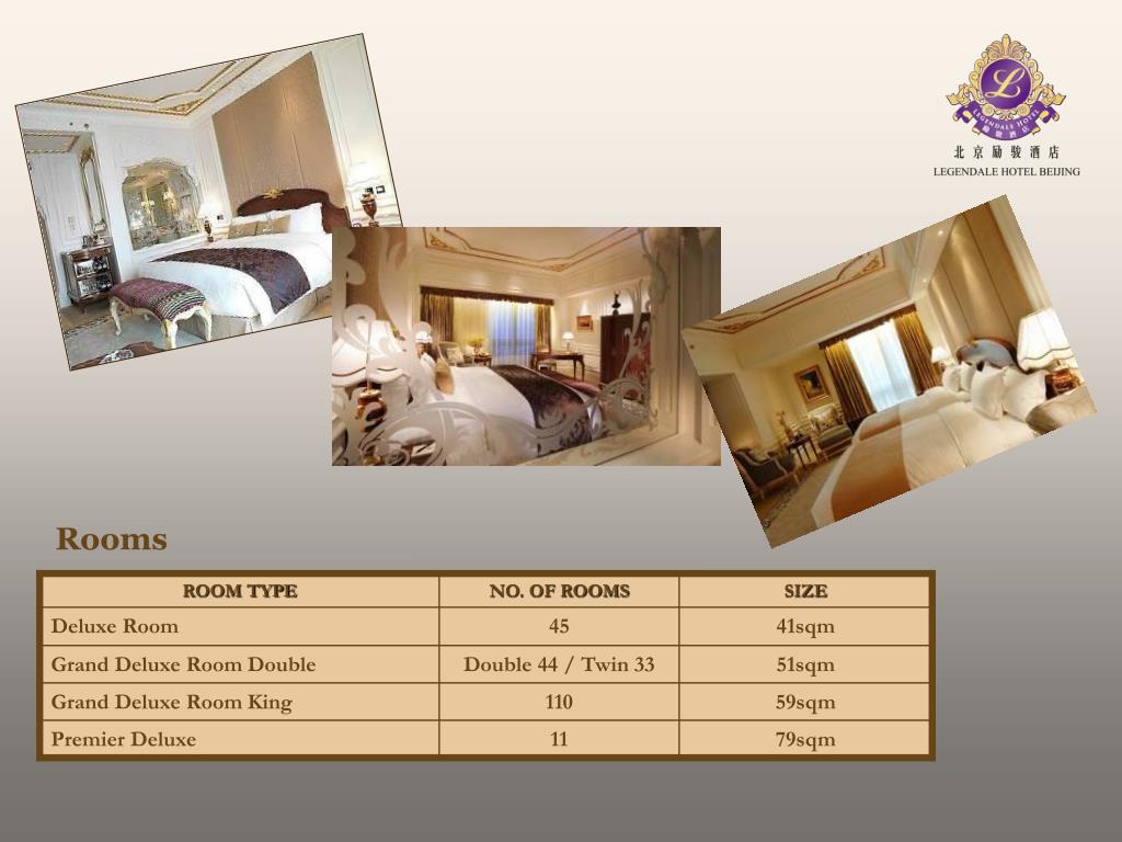 LEGENDALE HOTEL BEIJING www.legendalehotel.com “China’s Leading Luxury Hotel 2009 ” Awarded by World Travel Awards