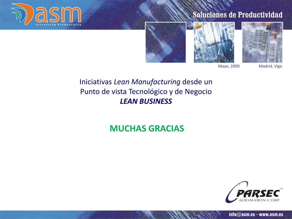 Mayo, 2009 Madrid, Vigo Iniciativas Lean Manufacturingdesde un Punto de vista Tecnológico y de Negocio LEAN BUSINESS MUCHAS GRACIAS