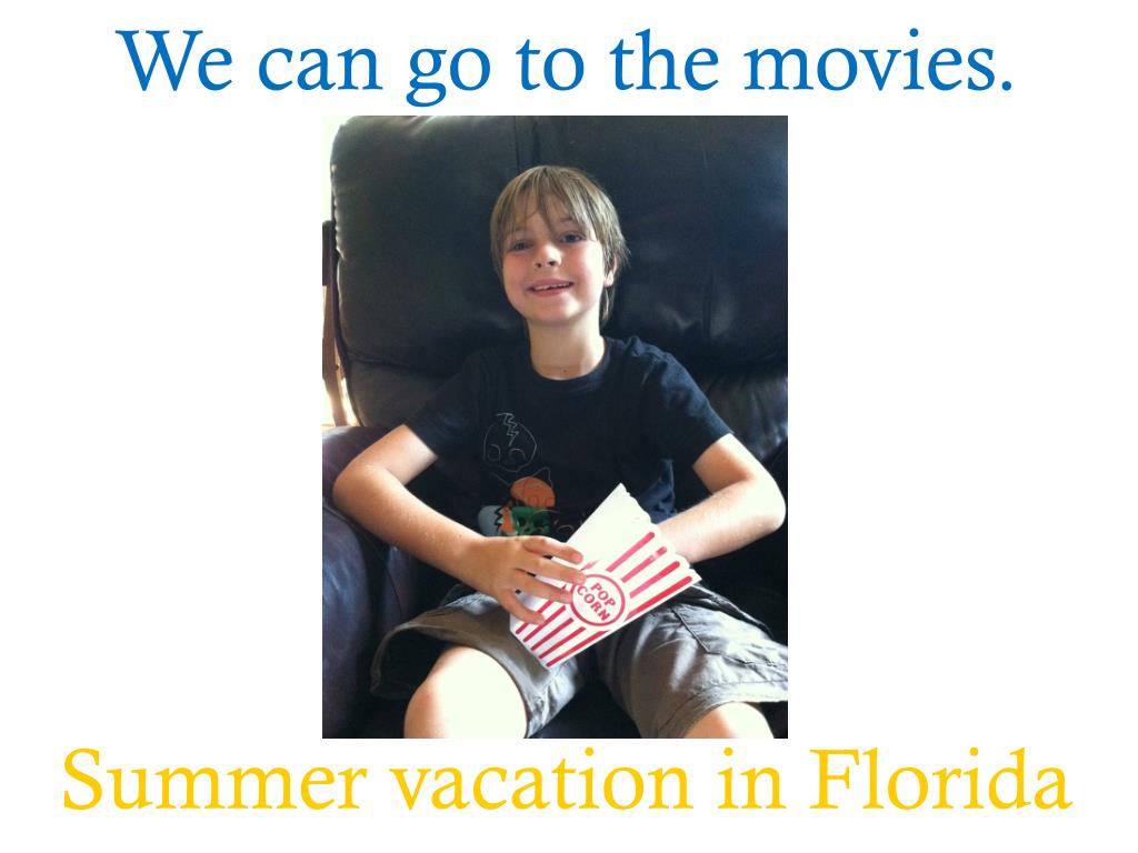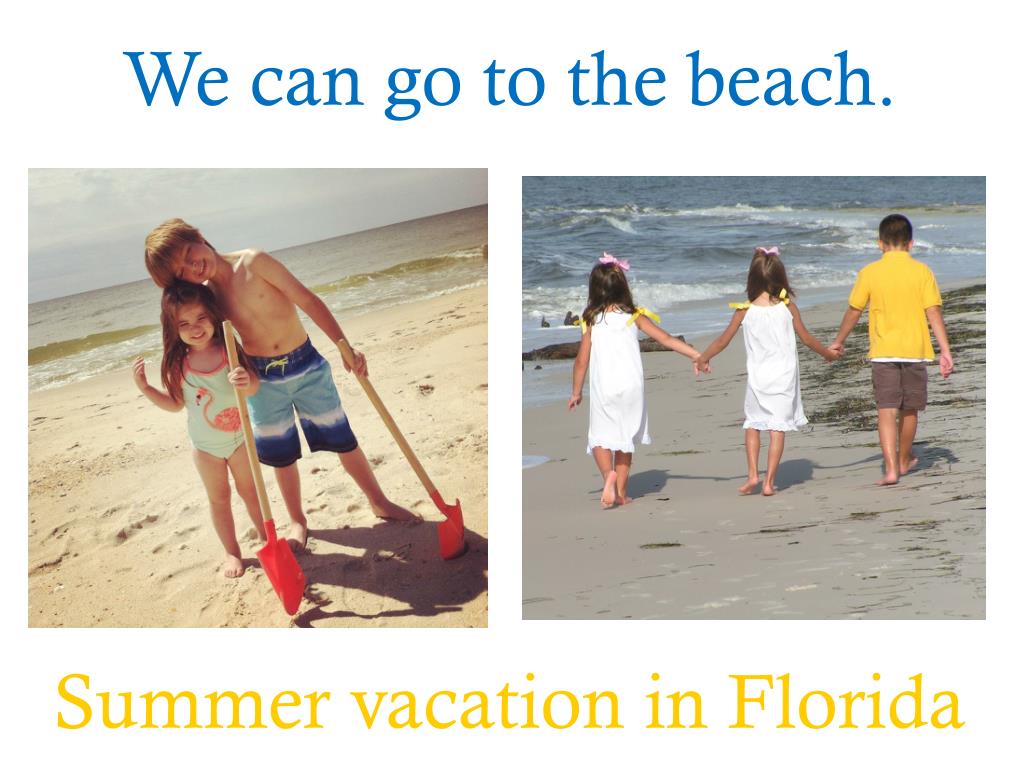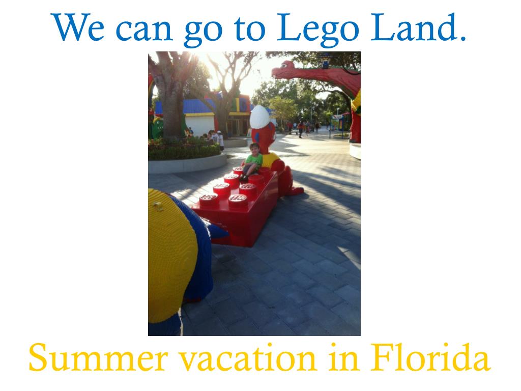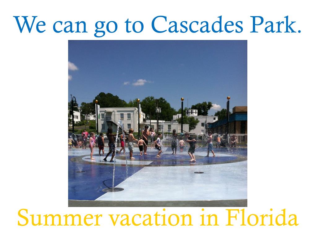 Summer Vacation in Florida. By: Cara Edenfield g roupbygroup.wordpress.com. We can go to the beach. Summer vacation in Florida. We can go to Lego Land. Summer vacation in Florida. We can go to Cascades Park. Summer vacation in Florida. We can go to the Jacksonville Zoo.