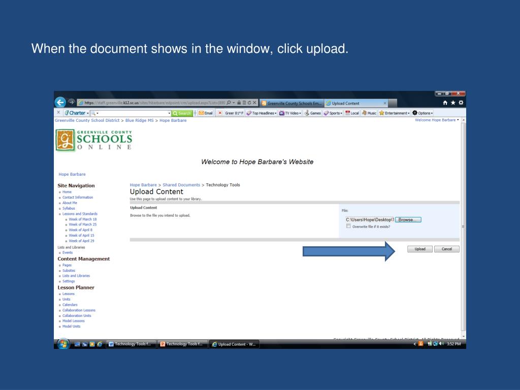 Technology Tools for Teachers. How to increase communication opportunities with your students and parents. Log in to your teacher web site. Access the “lists and libraries” section on the left side of your web site.