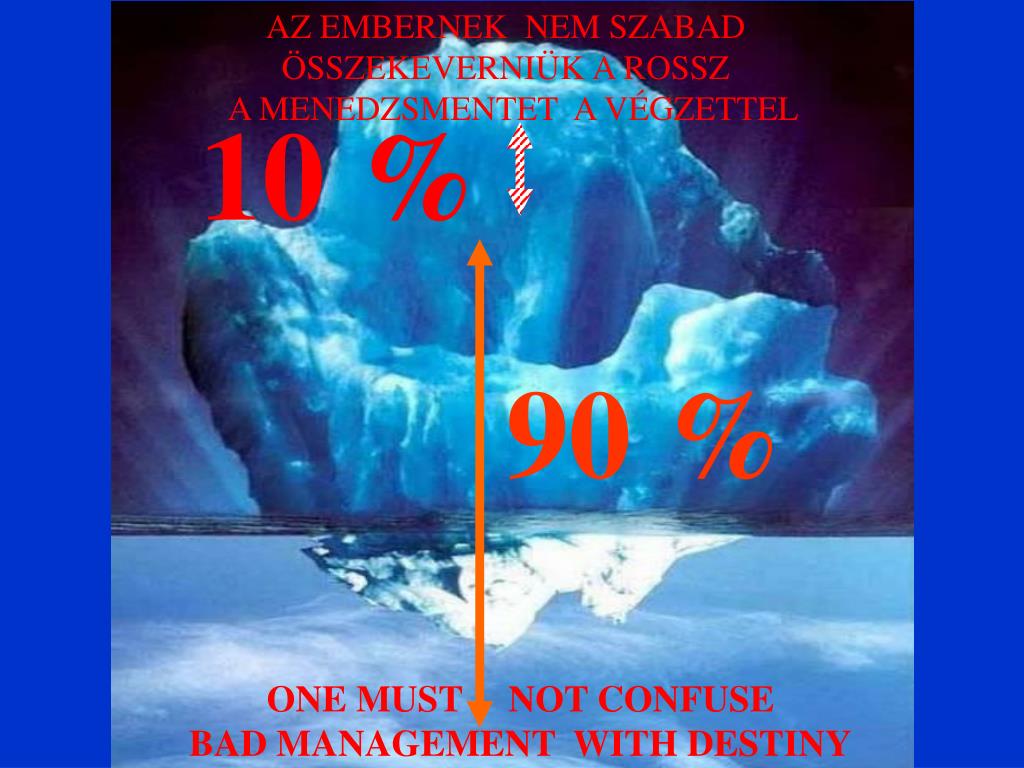 AZ EMBERNEK NEM SZABAD ÖSSZEKEVERNIÜKA ROSSZ A MENEDZSMENTET A VÉGZETTEL 10 % 90 % ONE MUSTNOT CONFUSE BAD MANAGEMENT WITHDESTINY