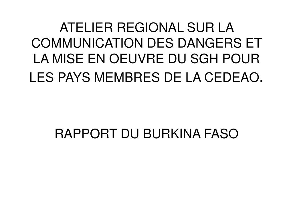 ATELIER REGIONAL SUR LA COMMUNICATION DES DANGERS ET LA MISE EN OEUVRE DU SGH POUR LES PAYS MEMBRES DE LA CEDEAO. RAPPORT DU BURKINA FASO