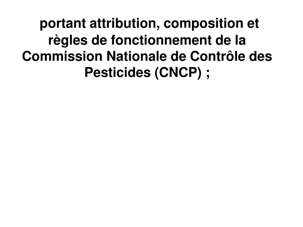 portant attribution, composition et règles de fonctionnement de la Commission Nationale de Contrôle des Pesticides (CNCP) ;