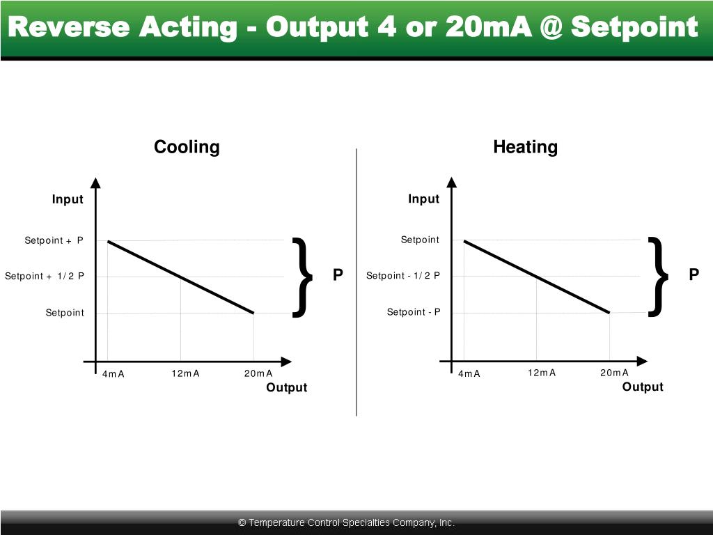 Reverse Acting - Output 4 or 20mA @ Setpoint Cooling Heating