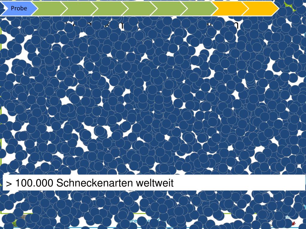 > 100.000 Schneckenarten weltweit > 100 Schneckenarten an hydrothermalen Tiefseestandorten Auswahl von 25 Arten durch Wissenschaftlerin Die Schneckenprobe – wo fängt man an? Probe > 100.000 Schneckenarten weltweit Manfred Bardy-Durchhalter