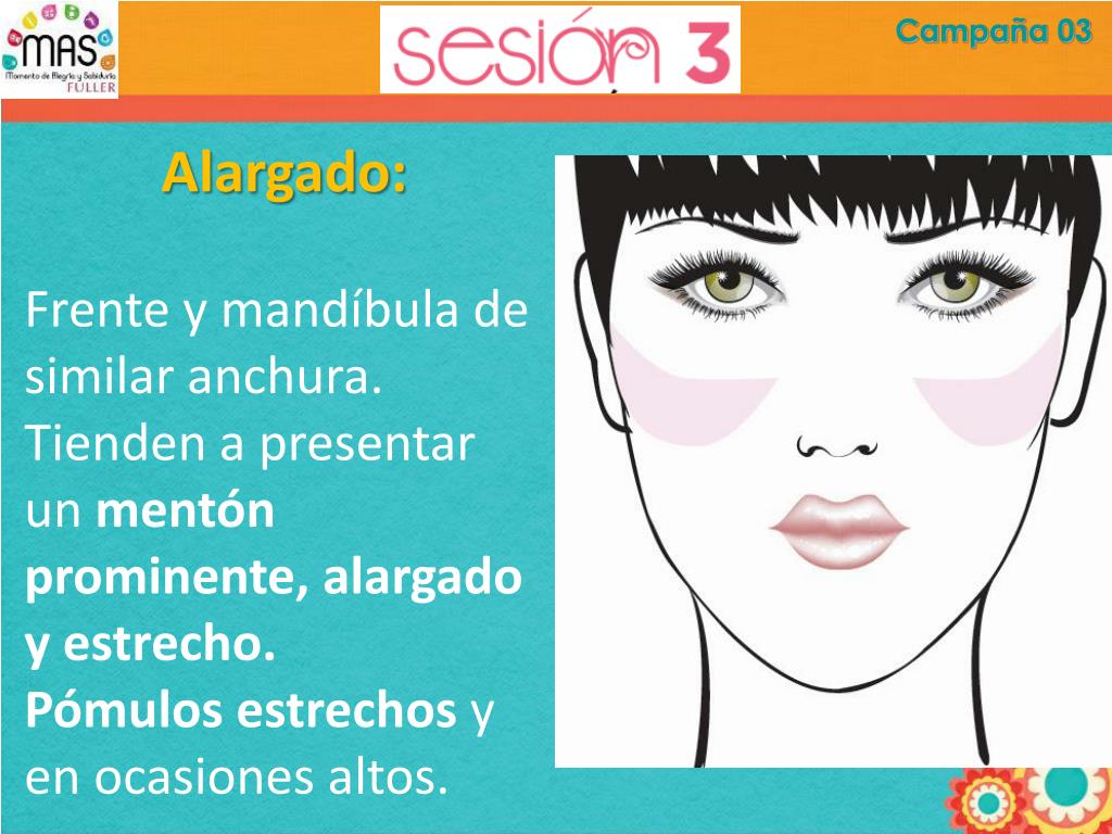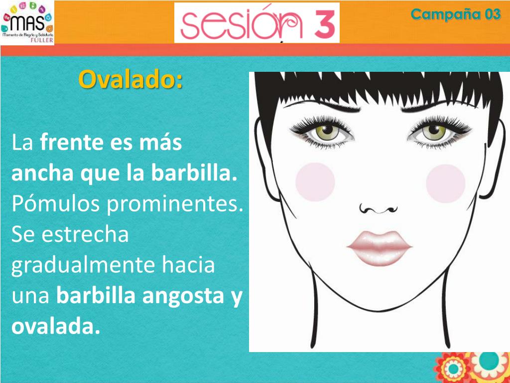 Campaña 03 Ovalado: La frente es más ancha que la barbilla. Pómulos prominentes. Se estrecha gradualmente hacia una barbilla angosta y ovalada.