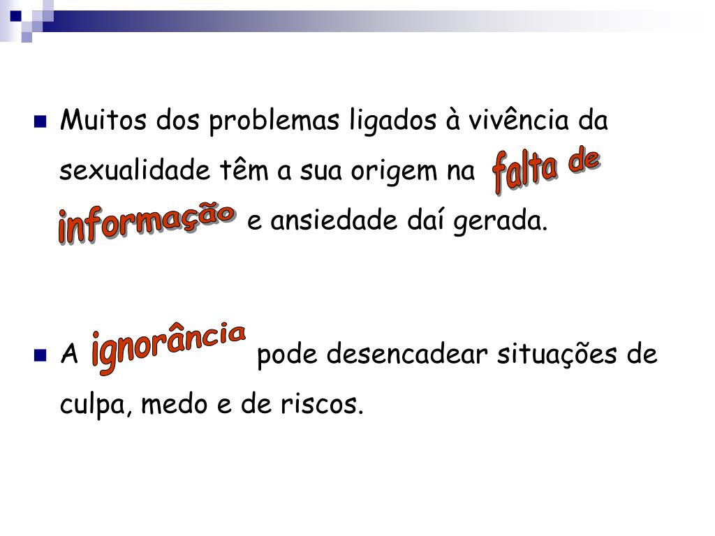 falta de • Muitos dos problemas ligados à vivência da sexualidade têm a sua origem na e ansiedade daí gerada. • A pode desencadear situações de culpa, medo e de riscos. informação ignorância