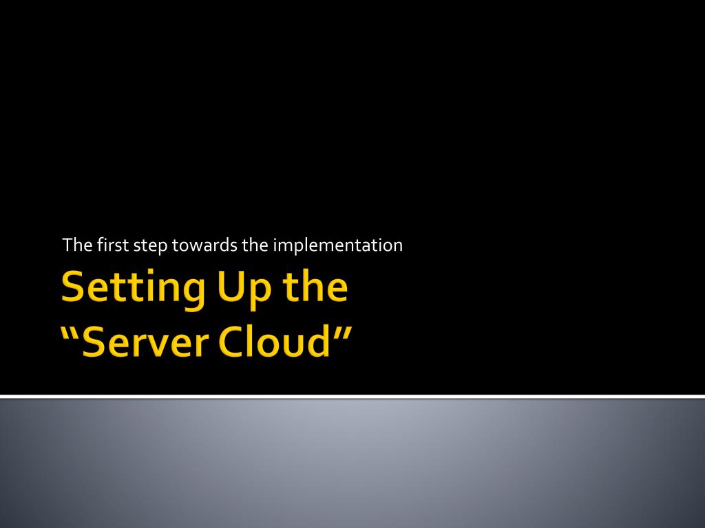 Work done so far • SVN account and repository created on sourceforge.net • The project is created on sourceforge.net and the URL is http://sourceforge.net/projects/cloudretail/ • Configuration of the Mail Server using Webmin. • Configuration of a consistent network throughout the nodes and bridge the configuration on the cloudcontrollers. • Installation of the eucalyptus-cloud and cc • Installation of the eucalyptus-node