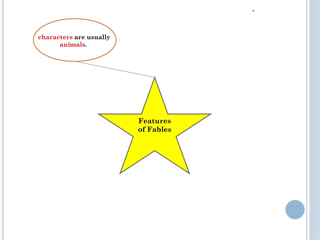 . At least one character has a flaw or problem. The characters are usually animals. Features of Fables