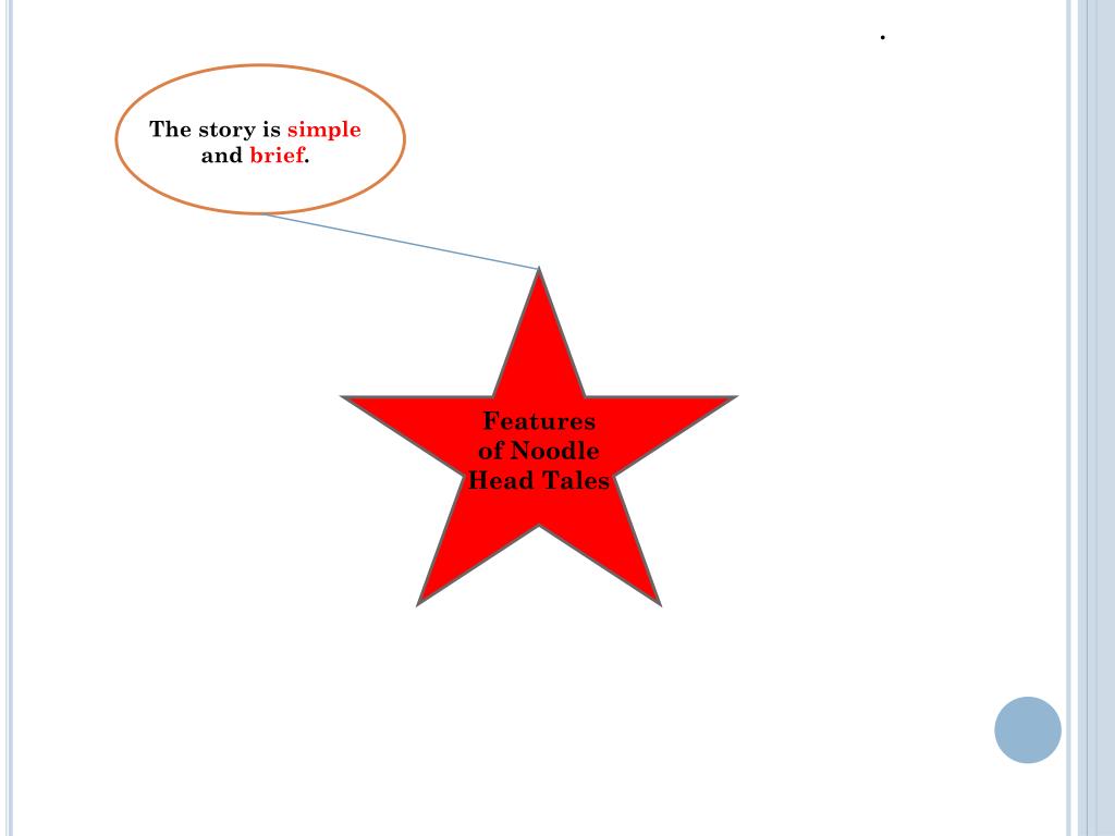 . The story is humorous and entertaining. The story is simple and brief. The main character is foolish and acts foolishly. Features of Noodle Head Tales The main character is not mean, and the story is not intended to make fun of him or her. The main character may believe something unbelievable, make a simple situation complicated, create a problem out of nothing, and/or misunderstand simple directions.