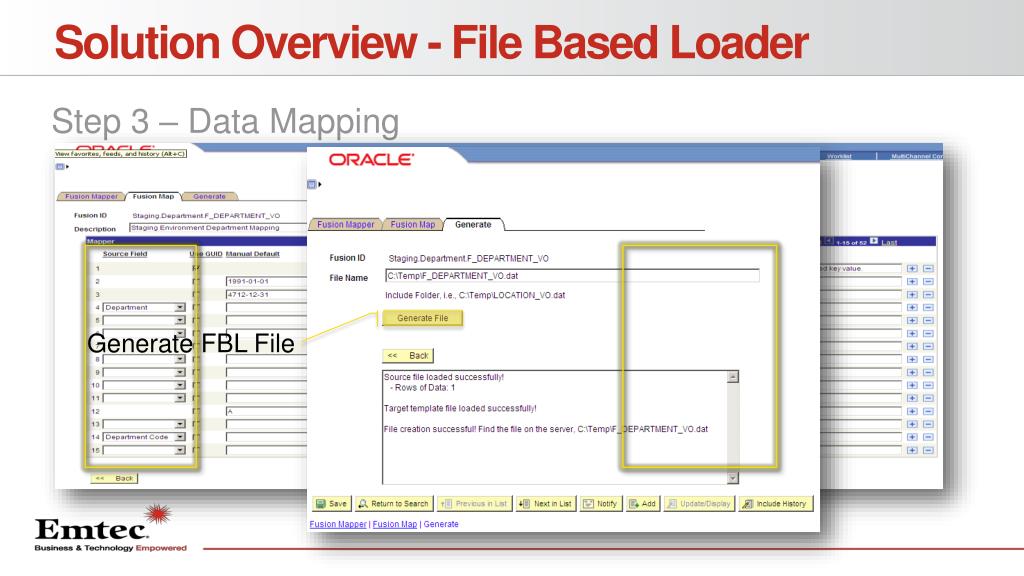 Solution Overview - File Based Loader Step 3 – Data Mapping Generate FBL File