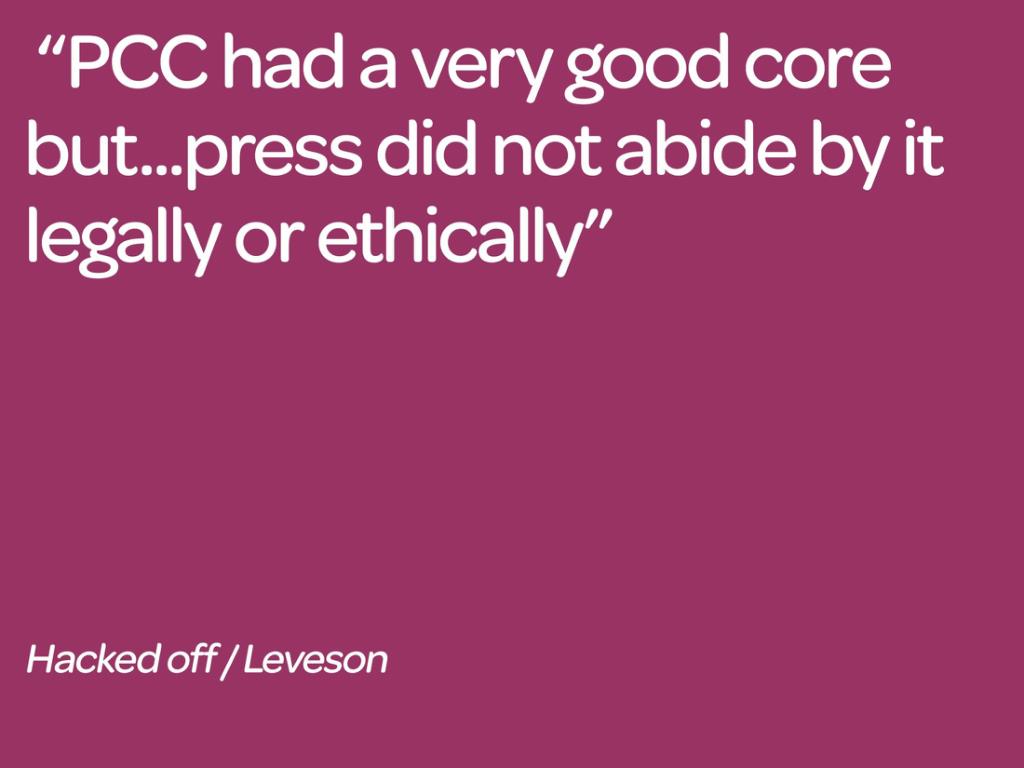 Regulate • “PCC had a very good core but...press did not abide by it legally or ethically” • Hacked off / Leveson