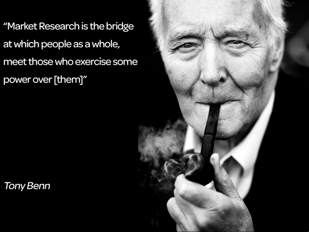 “Market Research is the bridge at which people as a whole, meet those who exercise some power over [them]” Tony Benn
