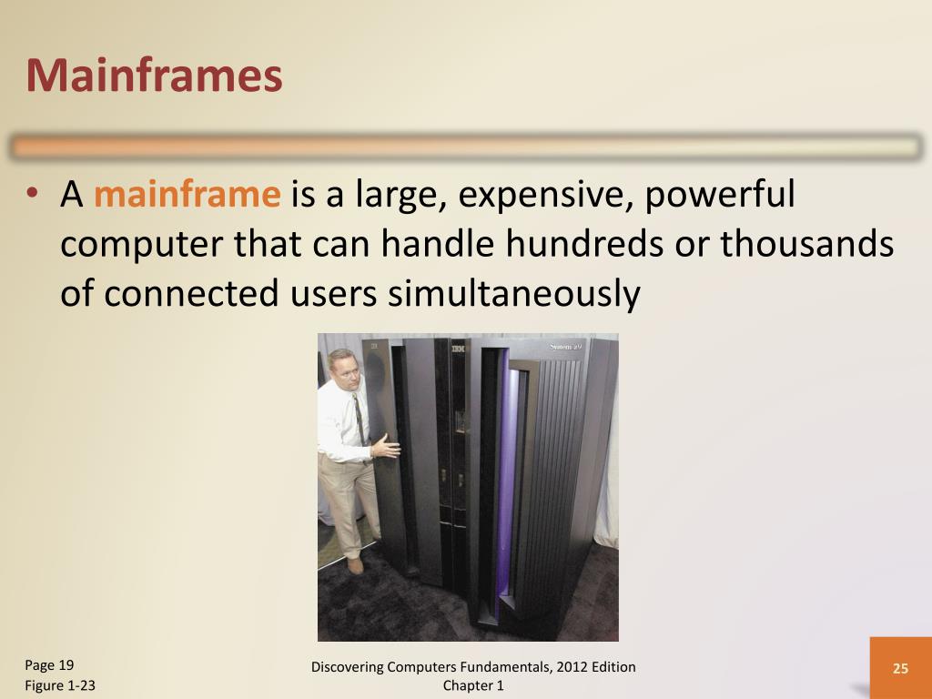 Mainframes • A mainframe is a large, expensive, powerful computer that can handle hundreds or thousands of connected users simultaneously Page 19 Figure 1-23 Discovering Computers Fundamentals, 2012 Edition Chapter 1