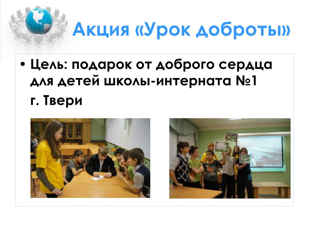 Акция «Урок доброты» • Цель: подарок от доброго сердца для детей школы-интерната №1 г. Твери