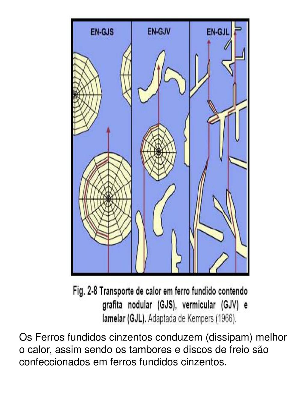 Os Ferros fundidos cinzentos conduzem (dissipam) melhor o calor, assim sendo os tambores e discos de freio são confeccionados em ferros fundidos cinzentos.
