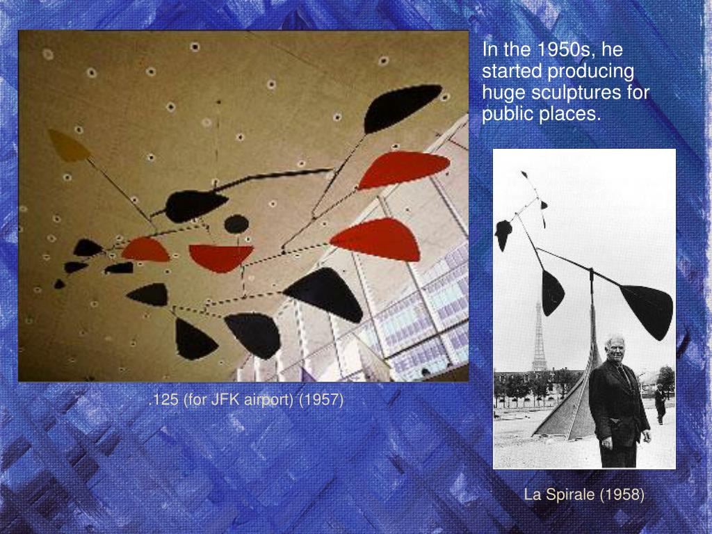 In the 1950s, he started producing huge sculptures for public places. .125 (for JFK airport) (1957) La Spirale (1958)