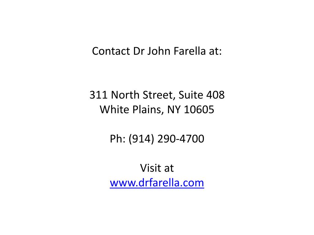 Contact Dr John Farella at: 311 North Street, Suite 408White Plains, NY 10605 Ph: (914) 290-4700 Visit at www.drfarella.com