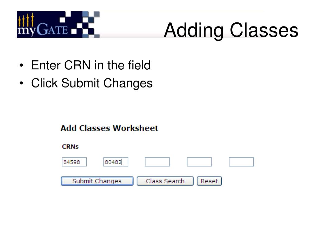 Adding Classes • Enter CRN in the field • Click Submit Changes
