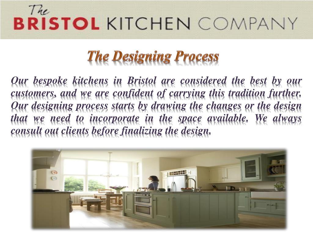 The Designing Process • Our bespoke kitchens in Bristol are considered the best by our customers, and we are confident of carrying this tradition further. Our designing process starts by drawing the changes or the design that we need to incorporate in the space available. We always consult out clients before finalizing the design.
