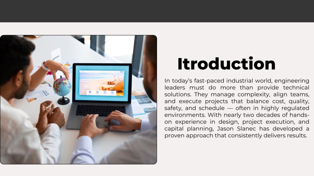 Itroduction In today’s fast-paced industrial world, engineering leaders must do more than provide technical solutions. They manage complexity, align teams, and execute projects that balance cost, quality, safety, and schedule — often in highly regulated environments. With nearly two decades of hands- on experience in design, project execution, and capital planning, Jason Slanec has developed a proven approach that consistently delivers results.