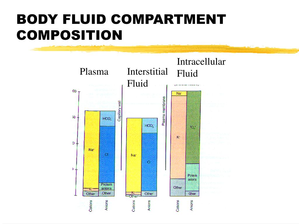 BODY FLUID COMPARTMENT COMPOSITION Intracellular Fluid Plasma Interstitial Fluid