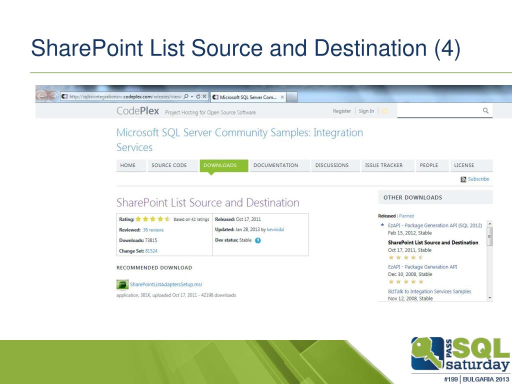 Compatibility and Tested • SQL Server 2005 • SQL Server 2008 • SQL Server 2008 R2 • SQL Server 2012 • SharePoint 2010 • SharePoint 2013 • BIDS • VSS2010 • VSS2012