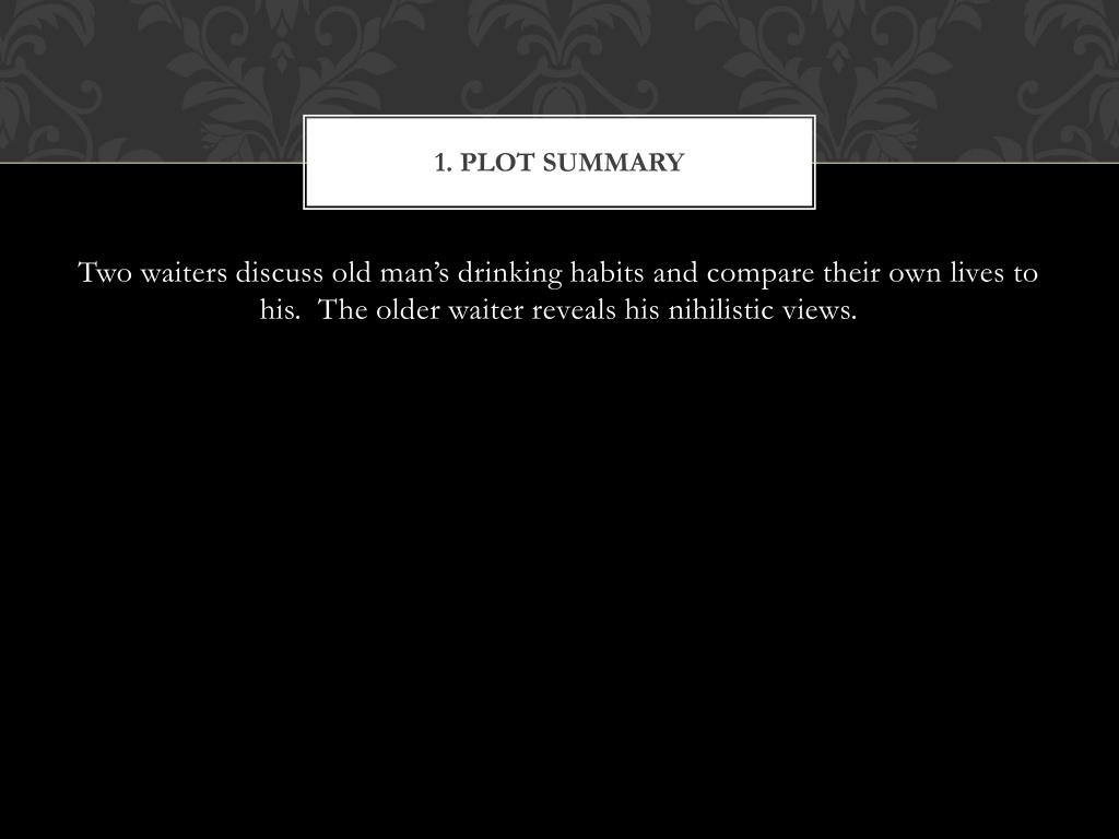 1. Plot summary Two waiters discuss old man’s drinking habits and compare their own lives to his. The older waiter reveals his nihilistic views.