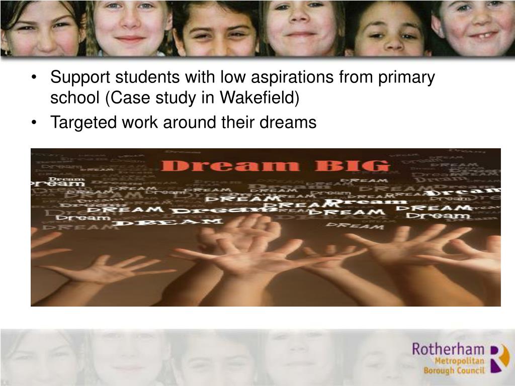 Support students with low aspirations from primary school (Case study in Wakefield) • Targeted work around their dreams