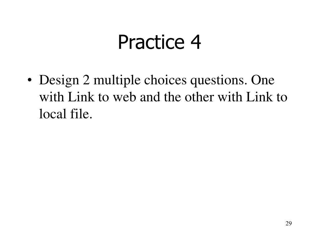Practice 4 • Design 2 multiple choices questions. One with Link to web and the other with Link to local file.