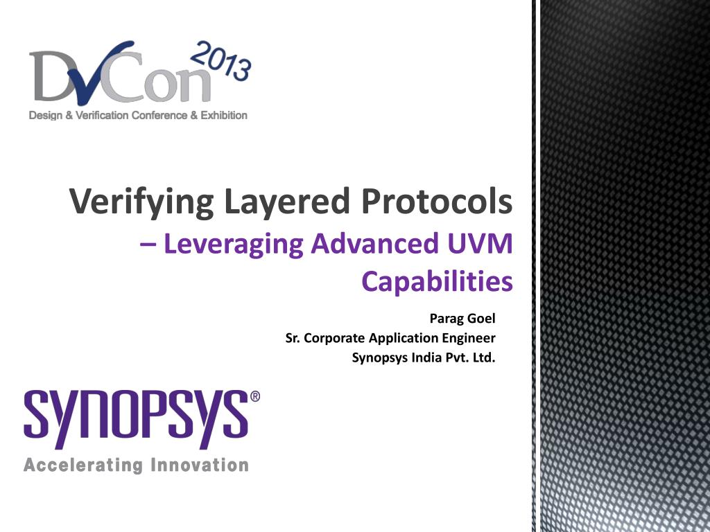 Verifying Layered Protocols – Leveraging Advanced UVM Capabilities Parag Goel Sr. Corporate Application Engineer Synopsys India Pvt. Ltd.