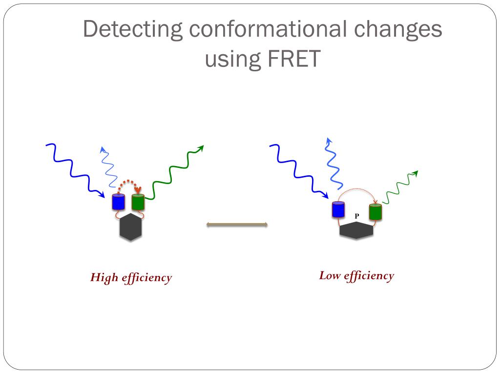 Detectingconformationalchangesusing FRET P Low efficiency High efficiency
