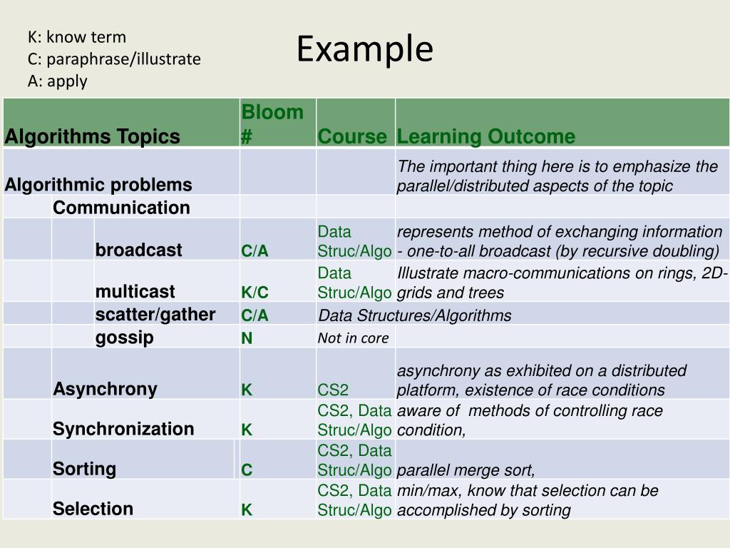 K: know term C: paraphrase/illustrate A: apply Example • Parallel and Distributed Models and Complexity • Costs of computation