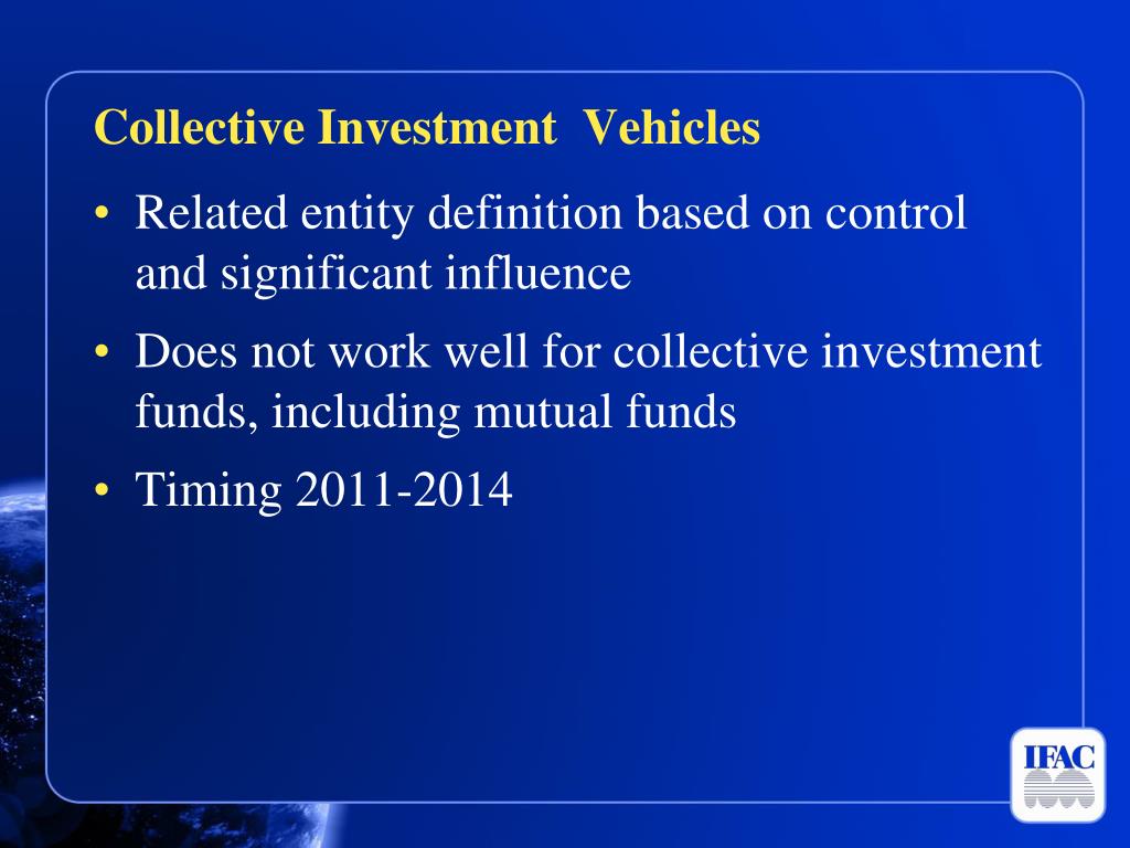 Collective Investment Vehicles Related entity definition based on control and significant influence Does not work well for collective investment funds, including mutual funds Timing 2011-2014
