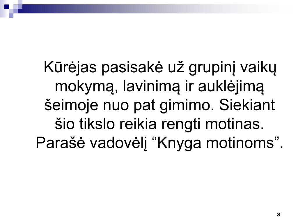 Kūrėjas pasisakė už grupinį vaikų mokymą, lavinimą ir auklėjimą šeimoje nuo pat gimimo. Siekiant šio tikslo reikia rengti motinas. Parašė vadovėlį “Knyga motinoms”.